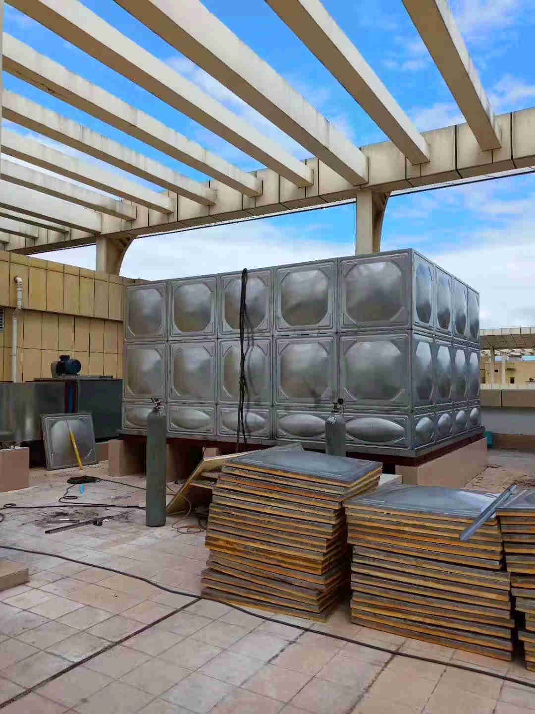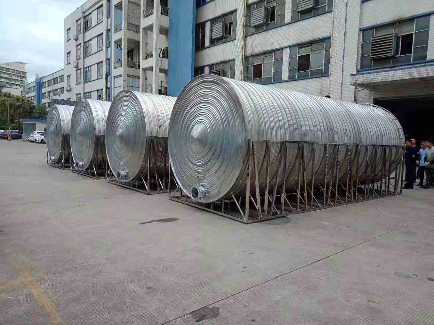 不銹鋼聚氨脂水箱分為兩層,內(nèi)層采用食品級304不銹鋼材料,與不銹鋼水箱同樣制作方法。內(nèi)部也需要拉筋加固,結(jié)構(gòu)都是一樣;不銹鋼聚氨脂水箱的中層部分為聚氨脂發(fā)泡層,標(biāo)準(zhǔn)配置均為50mm厚度的聚氨脂發(fā)泡板。在工廠通過模壓成型,與不銹鋼水箱模塊同樣,使其能與不銹鋼水箱側(cè)面板材完全吻合,達(dá)到無空隙發(fā)揮最佳保溫性能;不銹鋼聚氨脂水箱外層為貼附層,為保護(hù)聚氨脂發(fā)泡層的作用。在外層也同樣采用食品級SUS304不銹鋼,因為此類鋼種的不生銹,韌性好。當(dāng)然為了節(jié)省不銹鋼聚氨脂水箱的成本,也可以采用彩鋼板或是201/202等相對價格較為使用的材質(zhì)作為不銹鋼聚氨脂水箱的外層貼附水箱