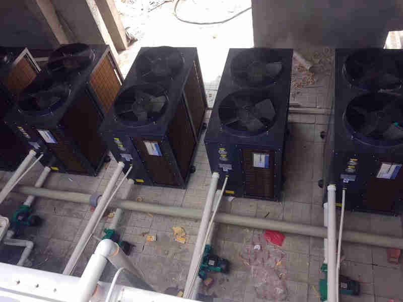 在宿舍樓樓頂安裝10組空氣能熱泵熱水機(jī)組,每組配備:10P空氣能熱泵機(jī)1臺(tái)+8噸保溫水箱1個(gè).