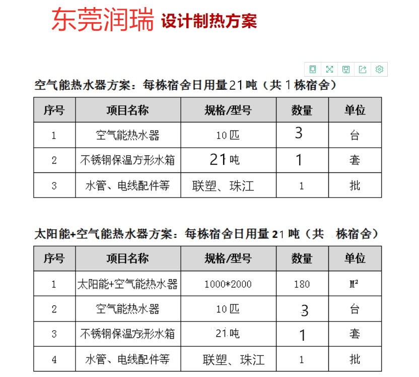東莞市潤瑞環(huán)保節(jié)能設(shè)備有限公司憑借10年的產(chǎn)品研究、優(yōu)良品質(zhì),已為2000多家大中型企業(yè)提供熱水工程服務(wù)。公司擁有獨(dú)立設(shè)計(jì)及安裝施工團(tuán)隊(duì),同時(shí)打造快捷服務(wù)團(tuán)隊(duì),365*24小時(shí)模式,更全面的為客戶提供專業(yè)及時(shí)的服務(wù)。服務(wù)對象:連鎖賓館、大型酒店、企業(yè)宿舍、學(xué)校醫(yī)院、桑拿會(huì)所、洗浴中心、足浴會(huì)所、美容美發(fā)、高檔別墅、工業(yè)熱利用行業(yè)、烘干熱風(fēng)空氣能工程。空壓機(jī)余熱回收熱水系統(tǒng)設(shè)計(jì)與施工。 系列產(chǎn)品:赫派空氣能熱水工程系統(tǒng)、赫派集中供暖熱泵、赫派空氣能熱泵中央熱水系統(tǒng)、太陽能熱水工程、高溫工業(yè)熱泵熱水工程、烘干熱風(fēng)空氣能熱水器、泳池空氣能熱泵熱水工程
