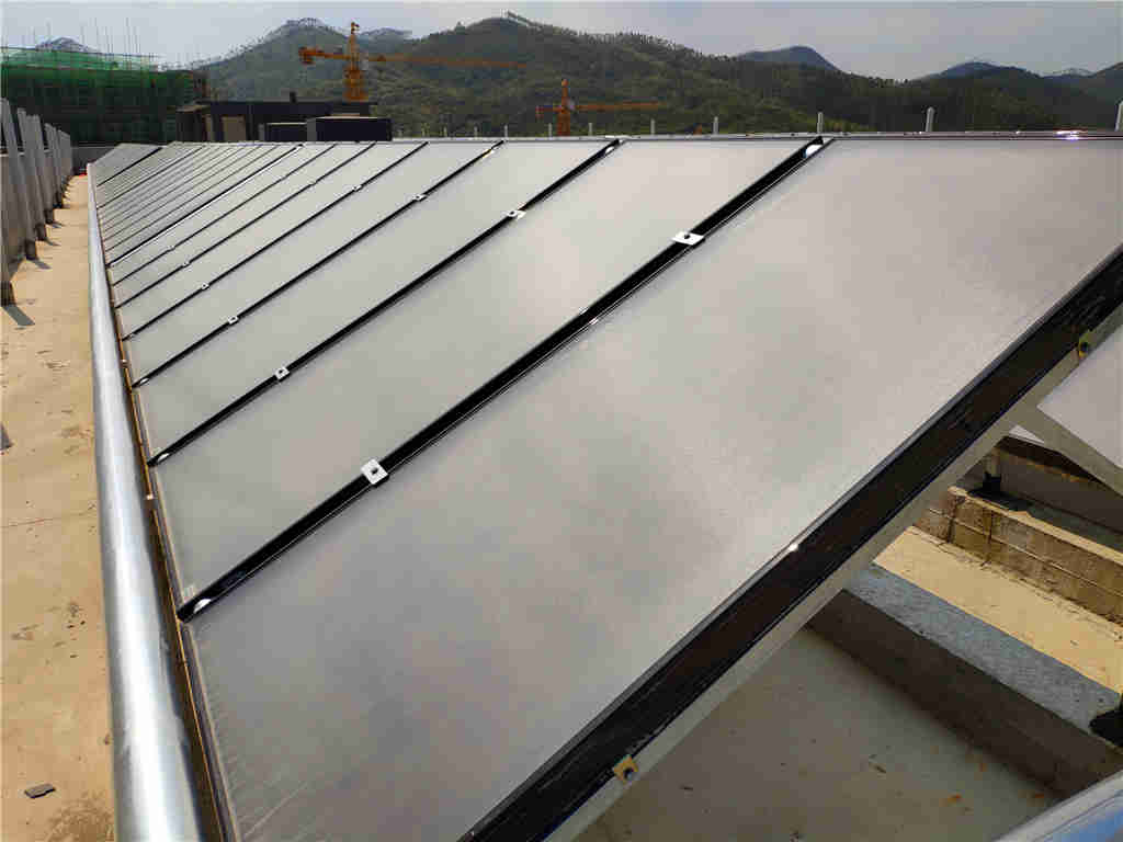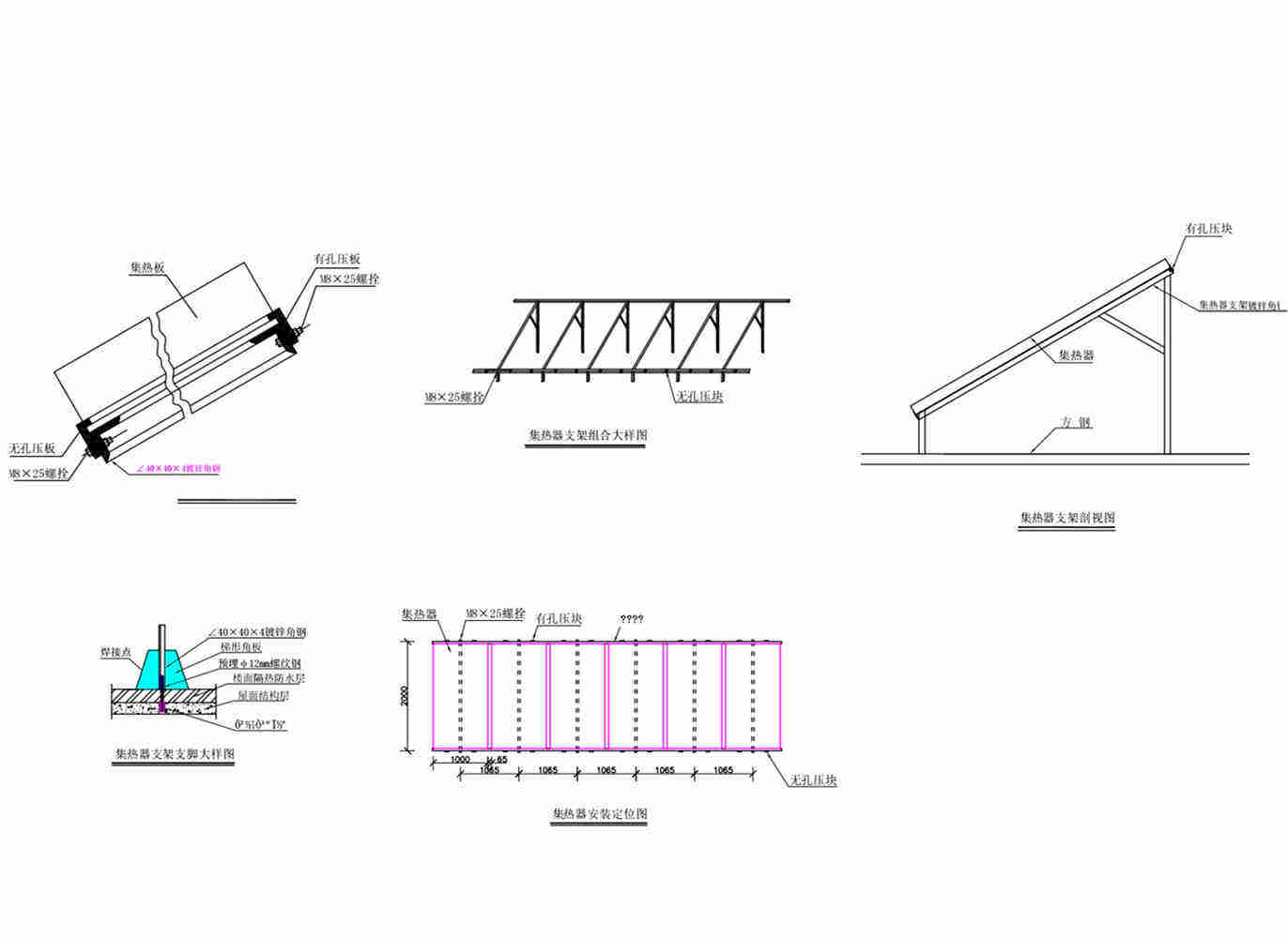 貯水箱設(shè)置在支架的上部,與真空加熱管相連。安裝時,先將水箱下部的連接螺釘插入支架上的桶托長孔內(nèi),調(diào)整連接螺釘在長孔內(nèi)的位置,使水箱與支架保持平衡。