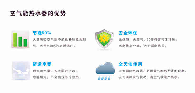 自來(lái)水經(jīng)“空氣能”熱水器一次加熱到60℃,供水及時(shí),即使冬季水箱溫度下降時(shí),系統(tǒng)自動(dòng)進(jìn)入循環(huán)加熱,提升水箱溫度,保證水箱隨時(shí)都有熱水供應(yīng)。