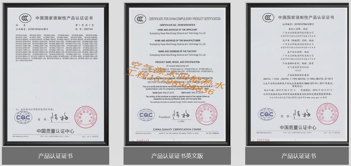 赫派空氣能熱泵產(chǎn)品質(zhì)量檢驗證書