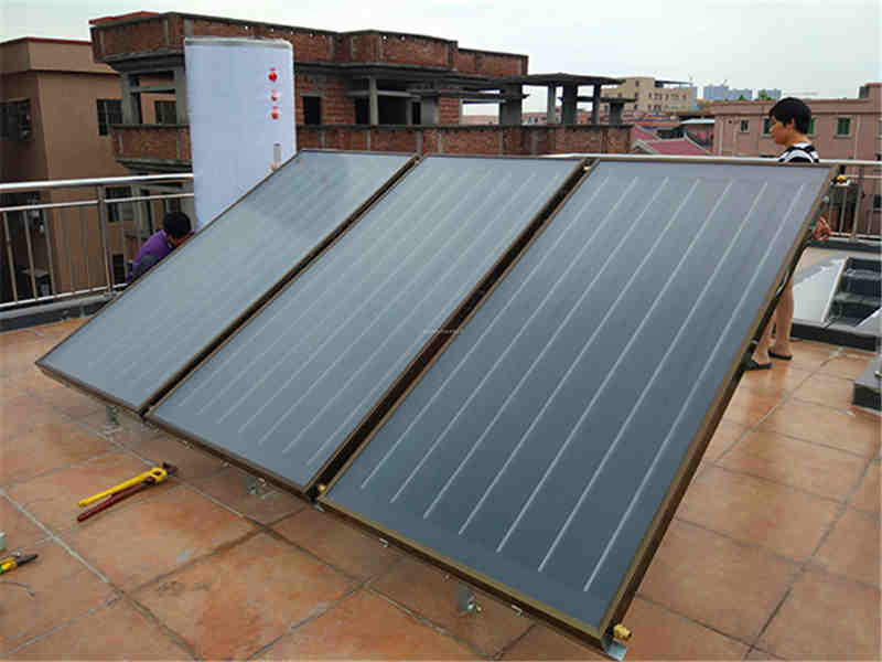 平板集熱器的集熱面板上鍍有黑鉻等吸熱膜,金屬管焊接在集熱板上,平板集熱器較真空管集熱器成本稍高,近幾年平板集熱器呈現(xiàn)上升趨勢(shì),尤其在高層住宅的陽(yáng)臺(tái)式太陽(yáng)能熱水器方面有獨(dú)特優(yōu)勢(shì)。