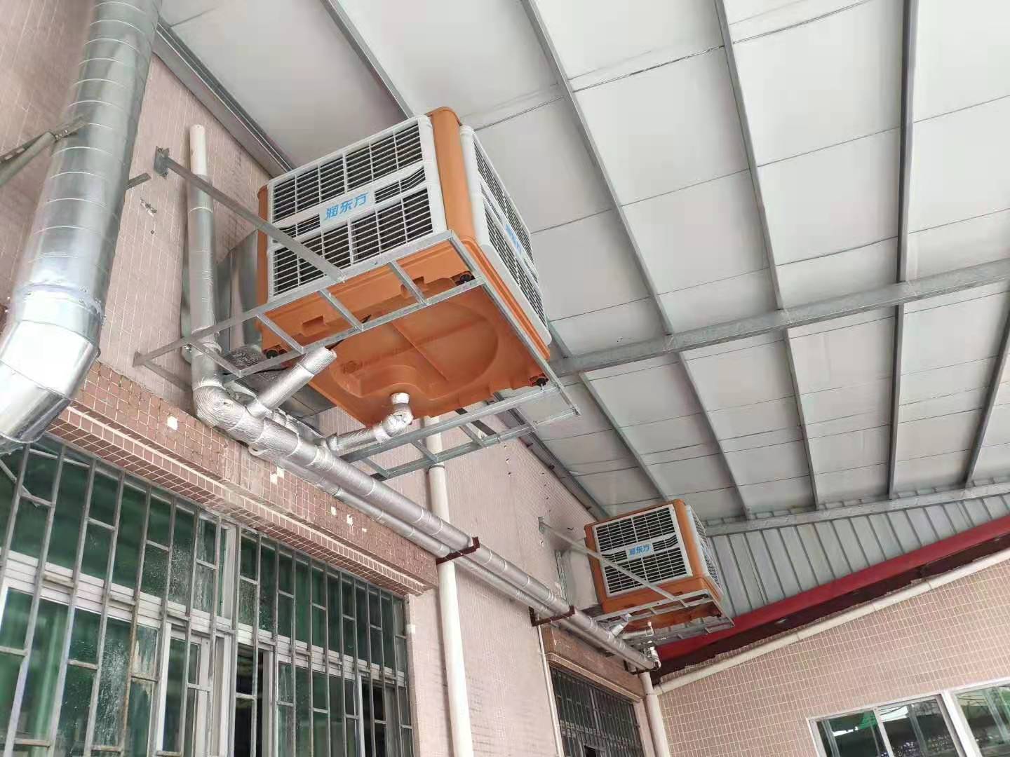 環(huán)??照{(diào)是根據(jù)水蒸發(fā)吸收熱量這一自然原理來降溫的, 是我們通常所指的就是商業(yè)、工業(yè)場所用的“大空調(diào)扇”,靠風機電機帶動空氣流經(jīng)水分加速水分蒸發(fā)吸熱來實現(xiàn)降溫。