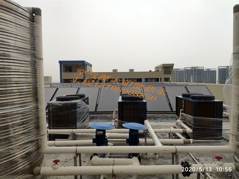 企業(yè)宿舍800人40噸生活熱水--赫派空氣能熱泵配五星太陽(yáng)能平板集熱器