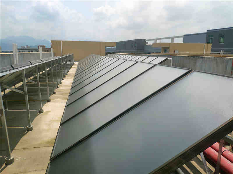 酒店太陽(yáng)能熱水系統(tǒng)是由太陽(yáng)能集熱器,保溫水箱,連接管路,控制中心,熱交換器共同組成。太陽(yáng)能集熱器利用太陽(yáng)的輻射熱量,通過(guò)管路將熱水從集熱器輸送到保溫水箱、將冷水從保溫水箱輸送到集熱器,整套系統(tǒng)形成一個(gè)閉合環(huán)路作為一次熱源,再通過(guò)換熱器及加壓供水設(shè)備供至各熱水用水點(diǎn)。