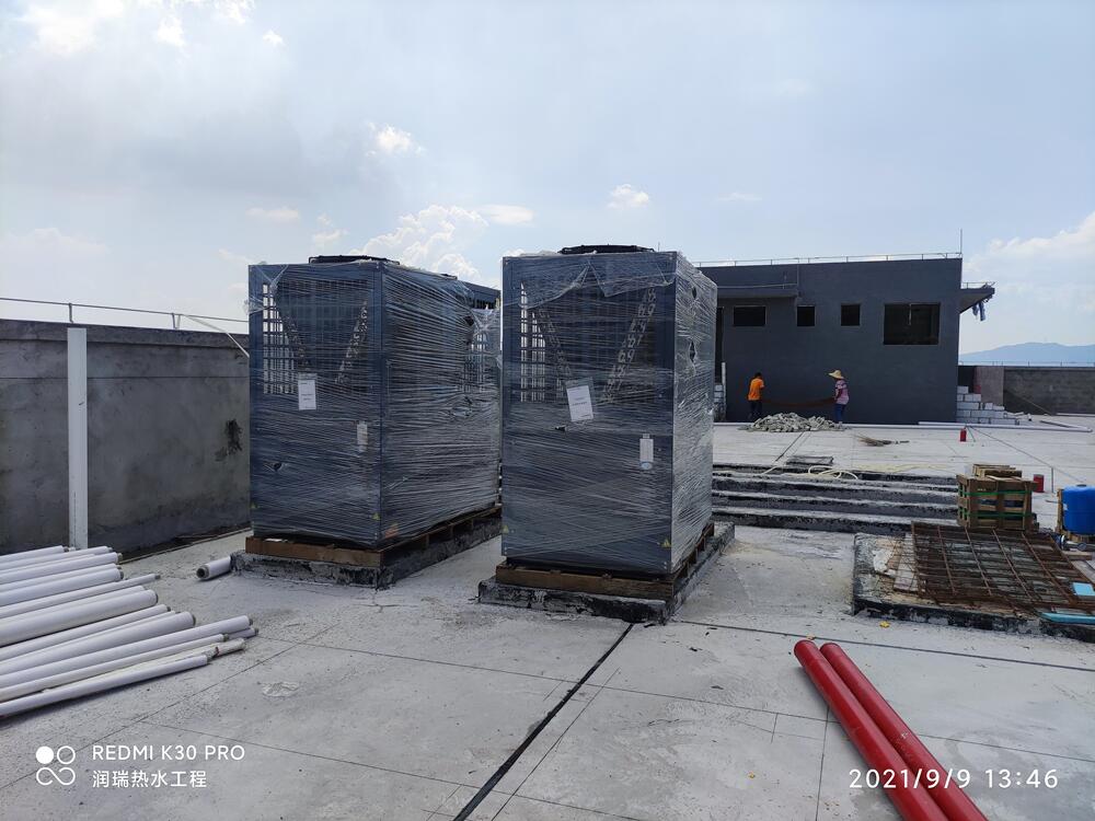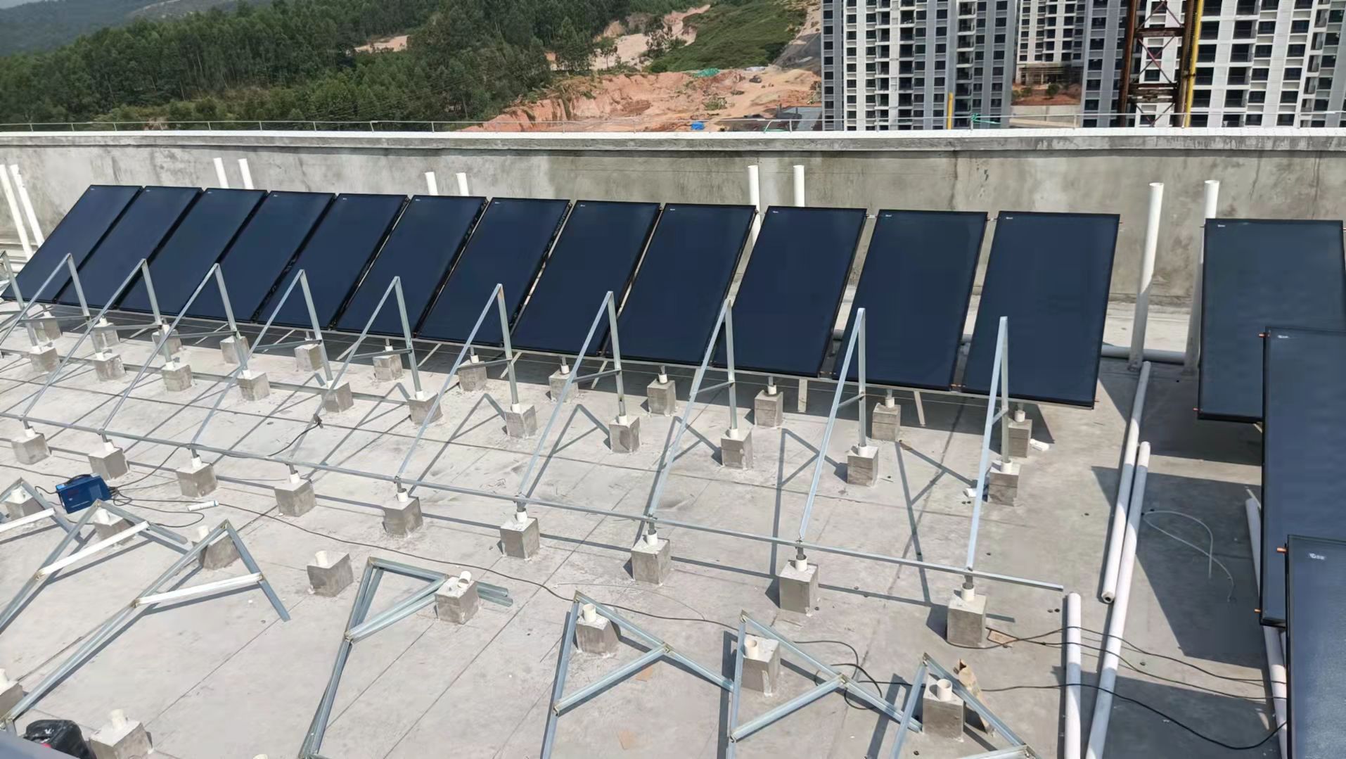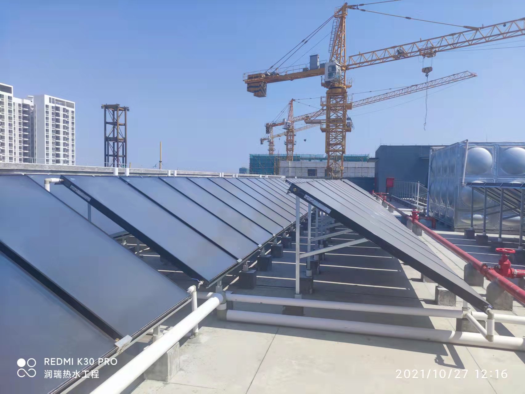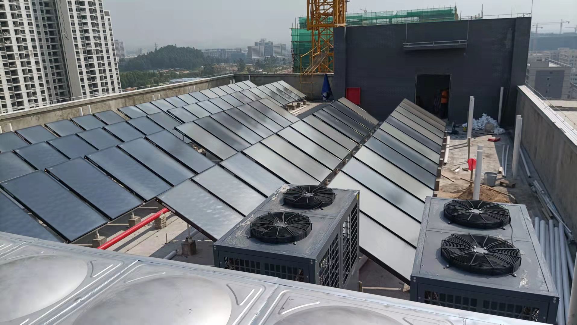2臺(tái)25匹空氣能熱泵輔助318平方米平板太陽(yáng)能集熱器安裝工程