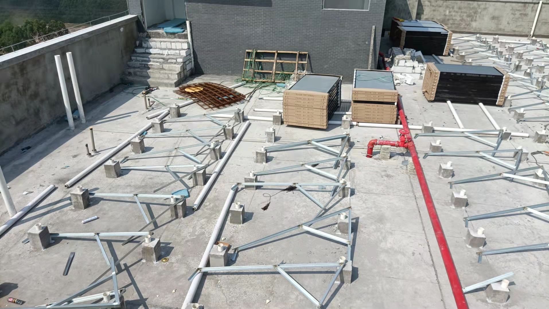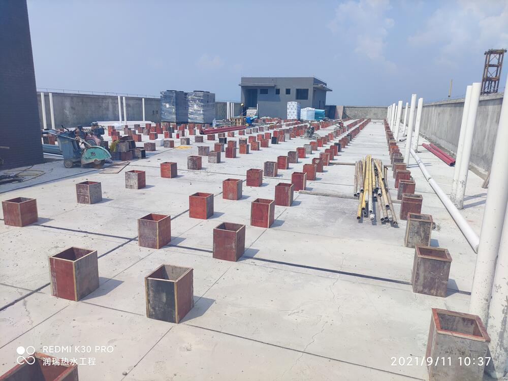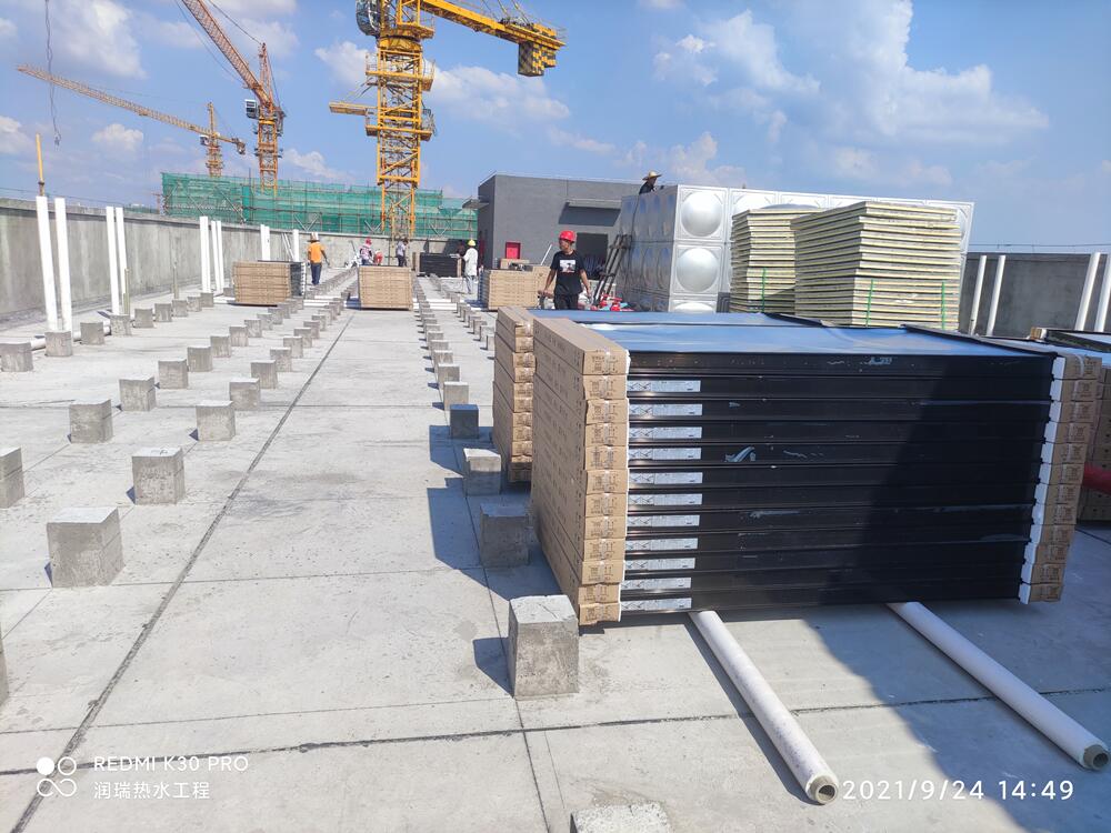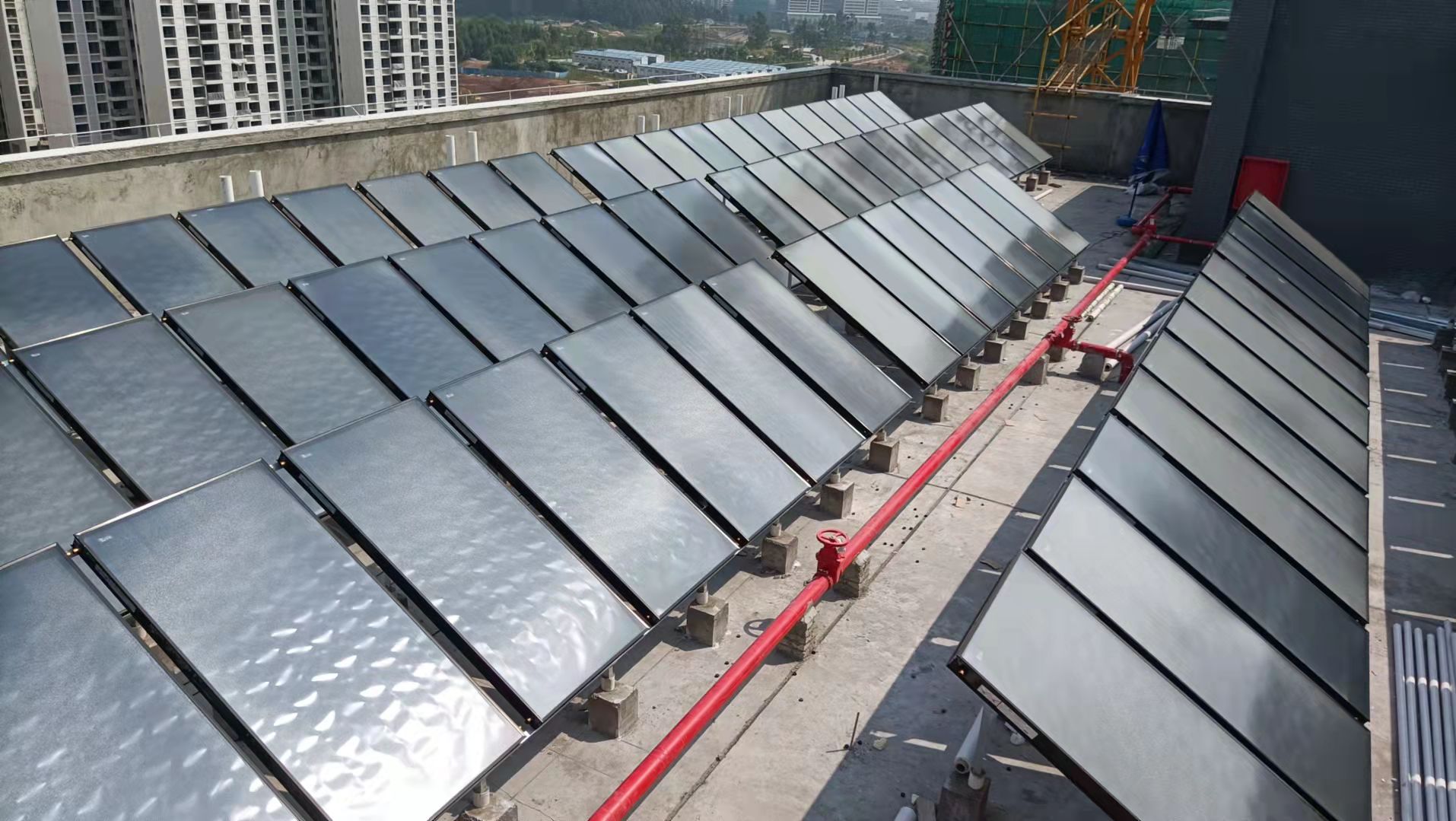 2臺(tái)25匹空氣能熱泵輔助318平方米平板太陽(yáng)能集熱器安裝工程